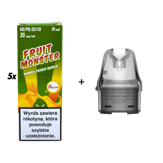 WKŁAD PUSTY OXVA NEXLIM + 5 x B25 LIQUID SALT MVL 10ML 20MG FRUIT MONSTER MANGO PEACH GUAVA